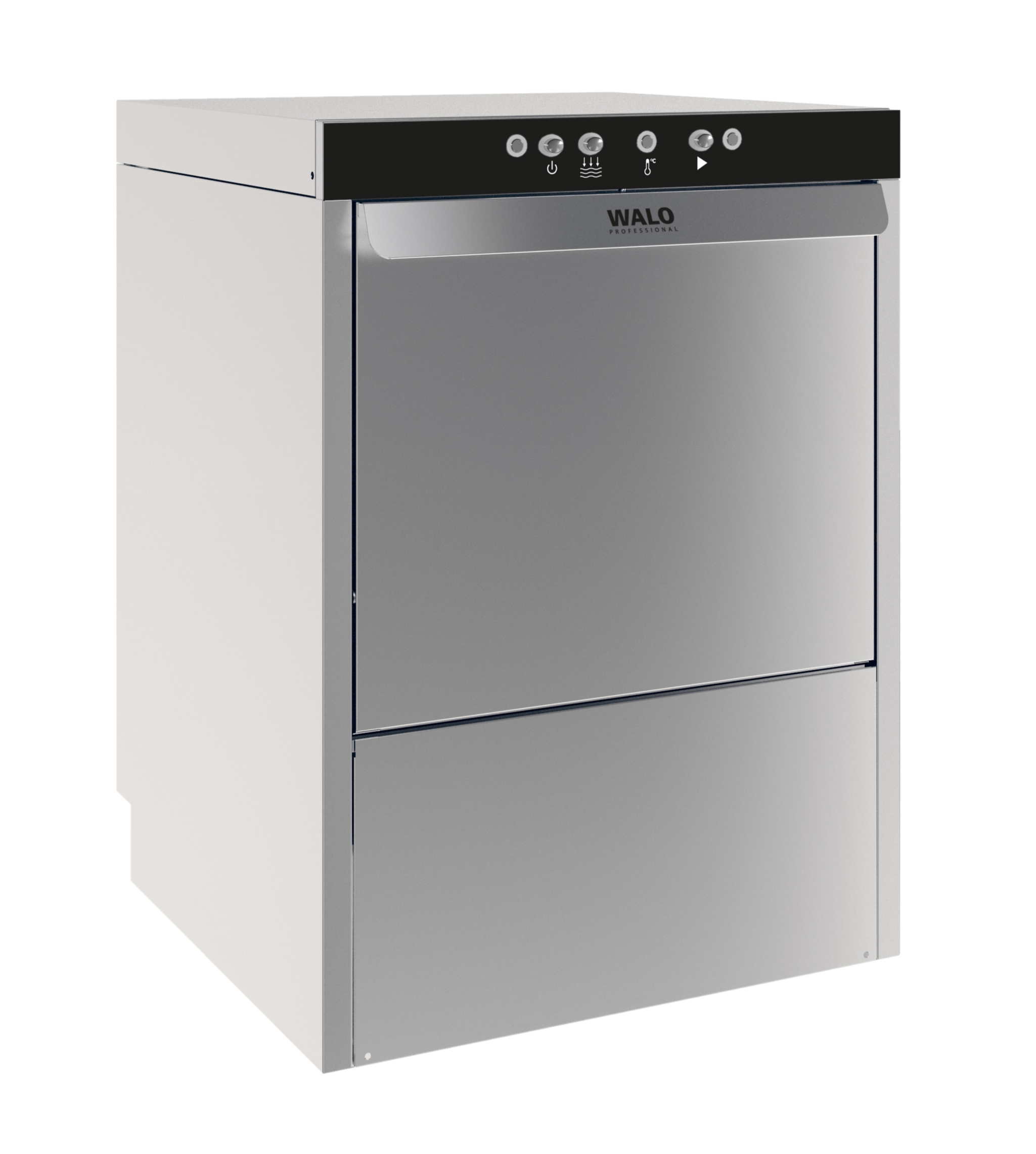 Untertischgeschirrspüler, 600 Teller/Std, Doppelwand, tiefgezogene Führungen, Druckboiler, Thermostop, elektromechanische Steuerung, Klarspüler- und Spülmitteldosierung, Ablaufpumpe.